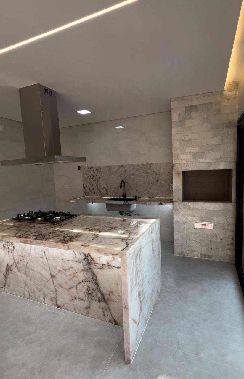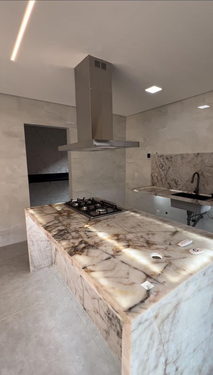 * Cozinha gourmet com ilha em pedras importadas.